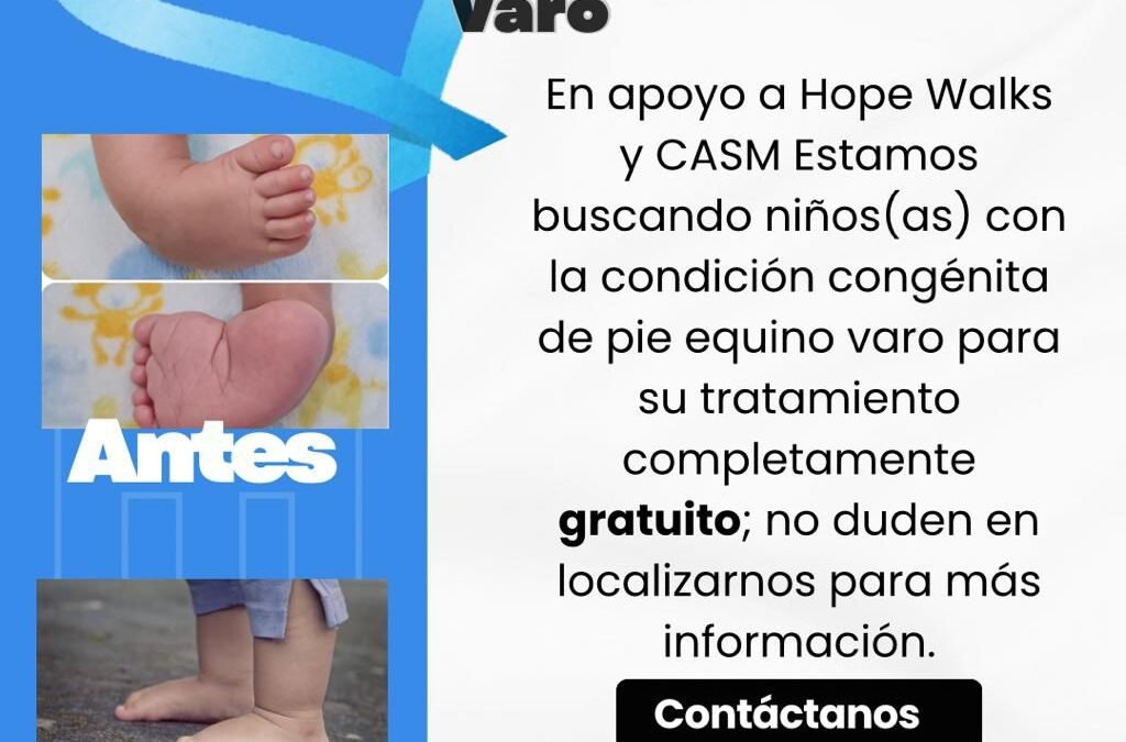 Con enorme alegría anunciamos que estamos buscando niños(a) con la condición congénita de Pie Equino Varo con la finalidad que reciban su tratamiento completamente gratuito.